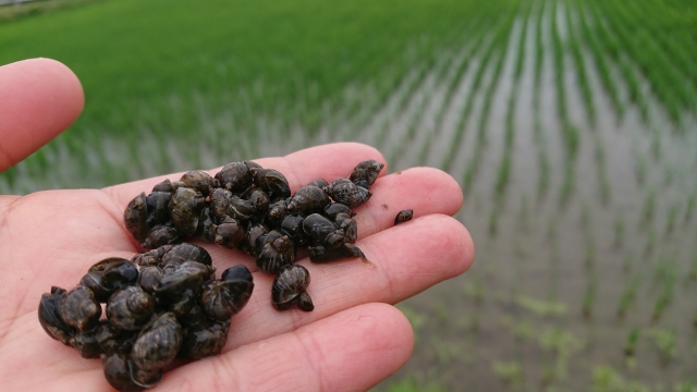 水田に生息するタニシは、田起こしをすると、たくさん獲れます。